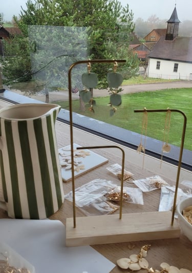 Découvrez notre passion pour la création de boucles d'oreilles uniques, fabriquées à la main avec des matériaux naturels, en acétate et en pâte polymère, reflétant nos voyages et émotions.